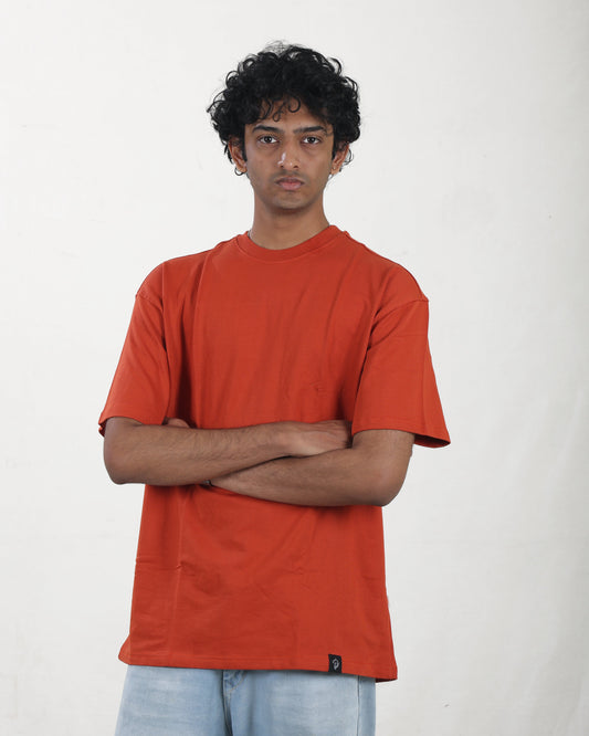 Rust Orange Oversized Round Neck T-Shirt