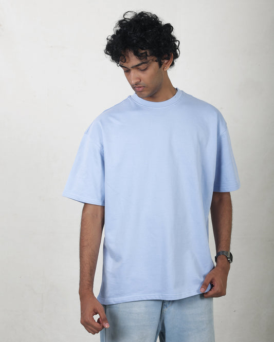 Sky Blue Oversized Round Neck T-Shirt